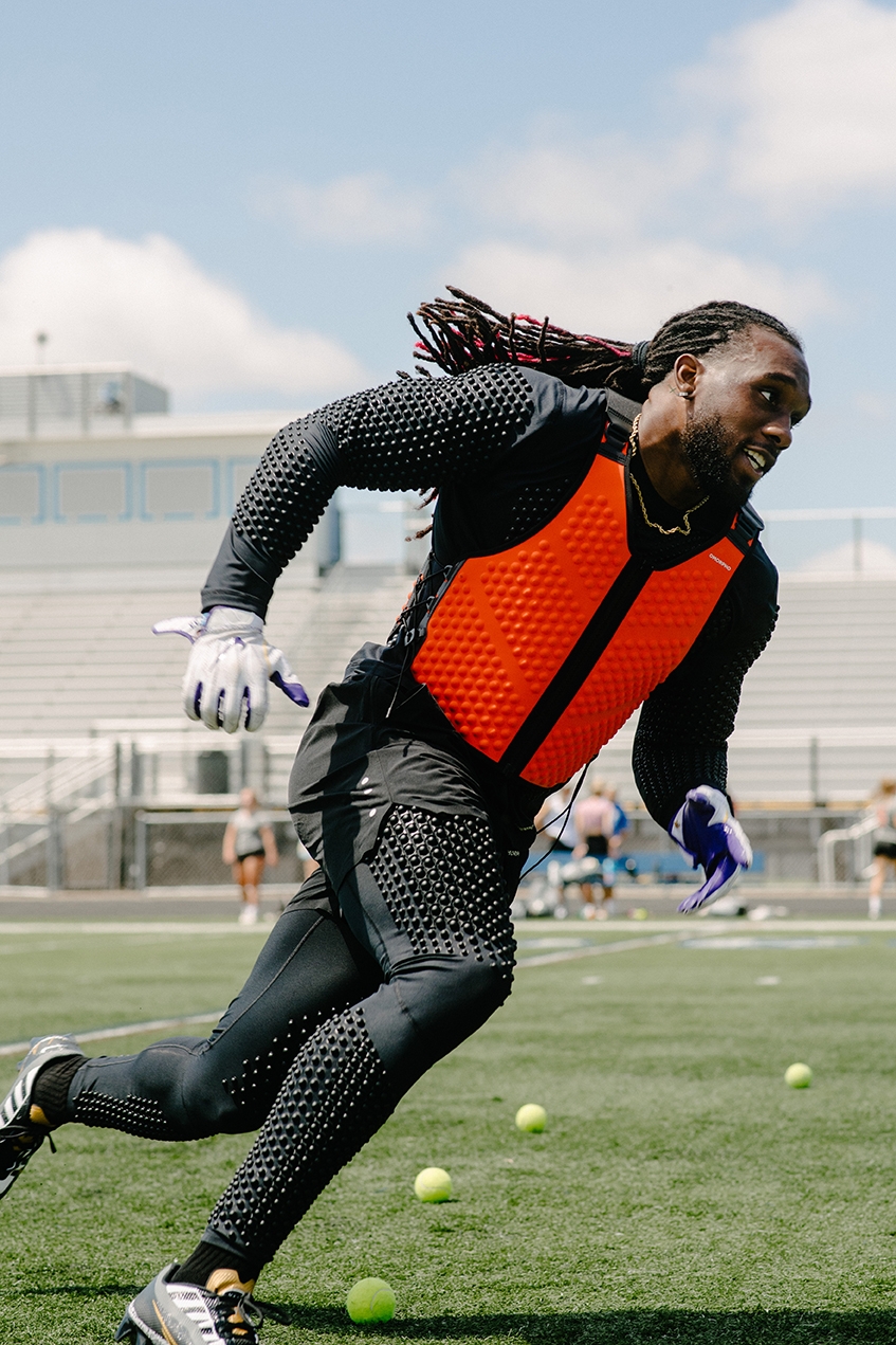 “OMORPHO is revolutionary because you get the benefits of lifting while playing your sport. You can do the exact movements you're going to be doing in a game [but] with MicroLoad™ that's evenly distributed across your body. If I think about what will directly translate to the field, I can run routes training with weighted tights and a weighted shirt, so that I'm working the exact muscle groups I'll use when I compete.”