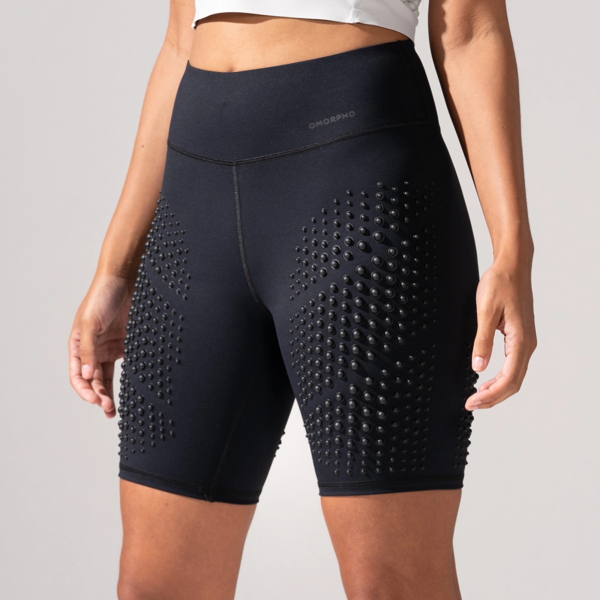 The OMORPHO G-Biker is the world’s first weighted bike short to feature MicroLoad™, which seamlessly combines comfort and functionality to optimize your workout sessions. These specially designed shorts are equipped with .5 lbs of wearable resistance strategically placed across the quadriceps and glutes, providing an added boost to your workout experience.