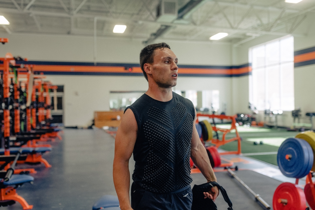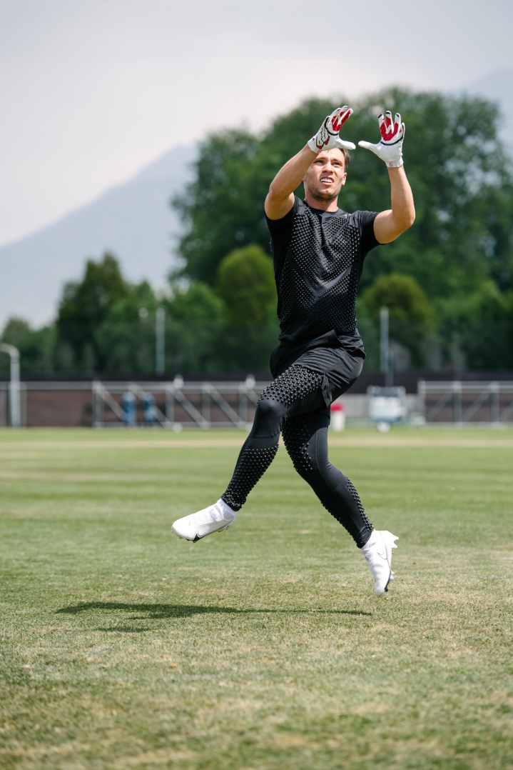 OMORPHO is revolutionary because you get the benefits of lifting while you're playing your sport. You can do the exact movements that you're going to be doing with MicroLoad⢠that's evenly distributed across your body. If I think about what will directly translate to the field, I can run routes training with weighted tights and a weighted shirt, so that I'm working the exact muscle groups I'll use when running routes during a game.