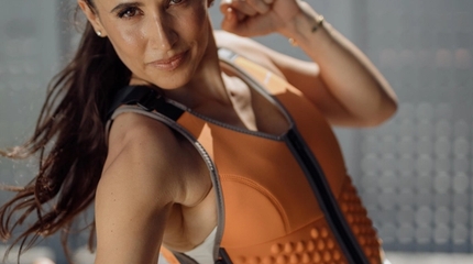 Exercise 1: A lateral plyometric jump move; the goal is to get low and travel, keeping your abs engaged and hips low - the G-Vest will help you really push the power in this move. This exercise also tests your balance and coordination, and can be modified by decreasing the jump and distance, making it more strength based.