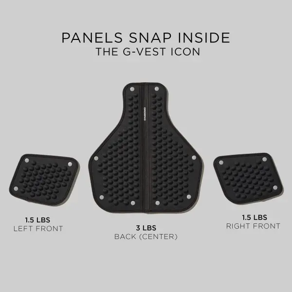 A perfect companion to the G-Vest Icon, giving you the power to customize your training resistance in seconds. Designed with a secure lock-in snap system, these interchangeable panels let you easily add or remove weight without compromising comfort, fit, or mobility. Whether you’re going light for endurance or heavy for strength, the G-Pack system makes your G-Vest Icon adaptable for every workout, from 5 to 12 lbs.