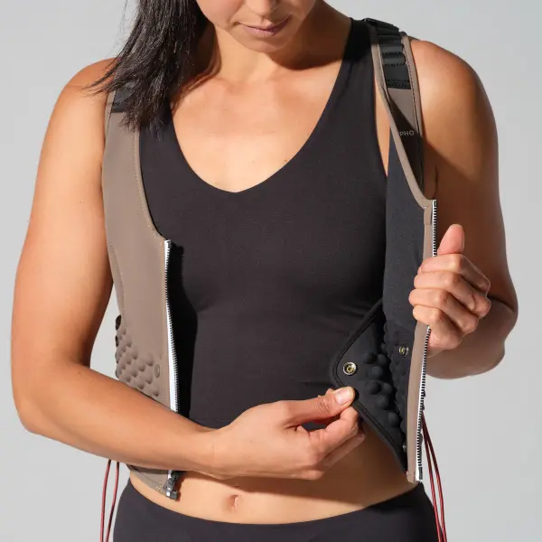 The all-new G-Vest Icon weighs 6 lb and features a secure snap system that connects to G-Pack panels for added resistance. Simply snap in the front and back panels to increase the weight from 8 to 12 lb, instantly and comfortably, without sacrificing freedom of movement or style.