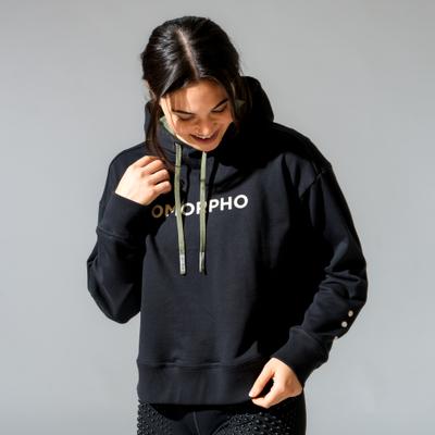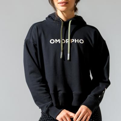 From warm ups to wind downs, HIIT to happy hour, the OMORPHO hoodie offers a soft feel and flattering fit for every moment of your life in motion. Handcrafted in Portland, Oregon, its genius lies in the details: a limited-edition back graphic and dropped shoulders that give it a relaxed feel and thick ribbing that expands at the sides. Elegant pleating in back creates subtle volume to enhance the flattering shape. Slightly cropped, it just skims the waist.